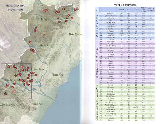 Ook noemenswaardig is de algemene tabel aan het begin van het boek met alle beschreven canyons, inclusief hun belangrijkste kenmerken (tijd, hoogste abseilpunt, aantal abseilpunten), evenals een algemene kaart.