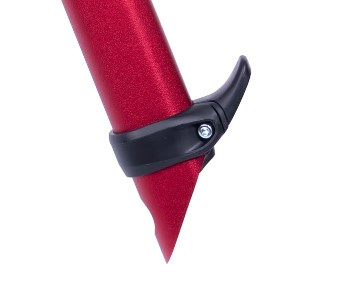 De steel is diagonaal afgesneden aan de basis, waardoor hij ook als punt kan dienen, en heeft een gat voor het bevestigen van een veiligheidslijn. De geïntegreerde technische pommel biedt een lichtgewicht, veelzijdige trekkersteun, die zorgt voor een stevige grip en controle tijdens technische beklimmingen.