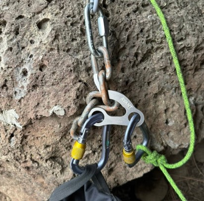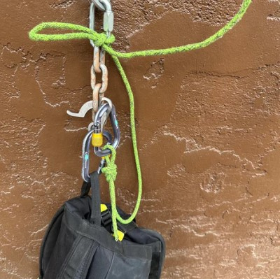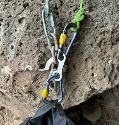 Deze haak is perfect voor het oefenen van top rope solo met een vast touw op een meerdaagse route. Neem een klein tagline-touw mee en trek je uitrusting achter je aan, zonder dat je een partner nodig hebt om de tas los te maken.