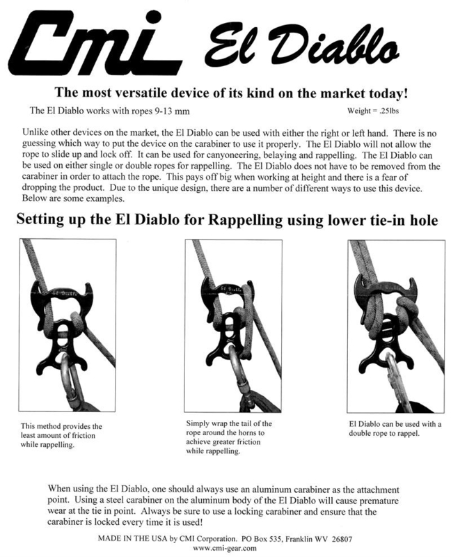 In tegenstelling tot andere apparaten op de markt, kan de El Diablo zowel met de rechter- als de linkerhand worden gebruikt. Je hoeft niet te gissen hoe je het apparaat op de karabijnhaak moet plaatsen om het correct te gebruiken. De El Diablo voorkomt dat het touw omhoog schuift en vast komt te zitten. Het kan worden gebruikt voor canyoning, zekeren en abseilen. De El Diablo kan worden gebruikt met zowel enkel- als dubbeltouwen voor abseilen. De El Diablo hoeft niet van de karabijnhaak te worden verwijderd om het touw te bevestigen. Dit is een groot voordeel bij werkzaamheden op hoogte, waar je bang bent het product te laten vallen. Dankzij het unieke ontwerp zijn er verschillende manieren om dit apparaat te gebruiken.