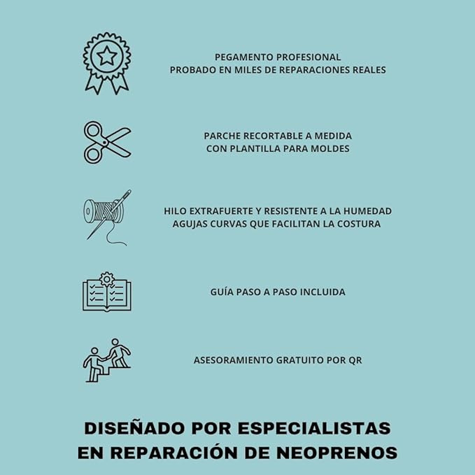 GRATIS HANDLEIDING EN ADVIES: Inclusief boekje met essentiële stappen voor het repareren van neopreen en een QR-code voor toegang tot een gedetailleerde handleiding en professionele ondersteuning van Reparacion de Neoprenos.